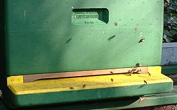 Flugloch versperrt, da sie trotz des schlechten Wetters flogen. Nach drei Tagen im Bienenstock (was ihnen nicht schadet) haben sie die Orientierung verloren, so daß sie
