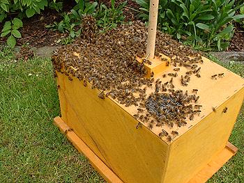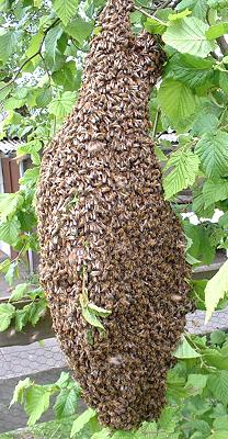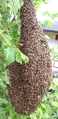einen Ausflug. Mit einem Schwarm will die drei Jahre alte Königin sich von dannen machen - da ihre Flügel gestutzt waren, kam sie nicht weit und