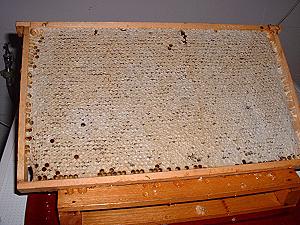 hat einen Wassergehalt von 17 - 19 %. Solcher Honig tropft auch bei heftigen Bewegungen nicht mehr aus den Zellen der Waben heraus.