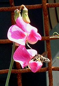 der Arbeit zu beobachten. Um an den Nektar der Wicken zu kommen, haben sie akrobatische Techniken entwickelt. Sie drücken mit dem Körper einen Teil der Blüte nach unten. Dadurch wird der Weg frei.